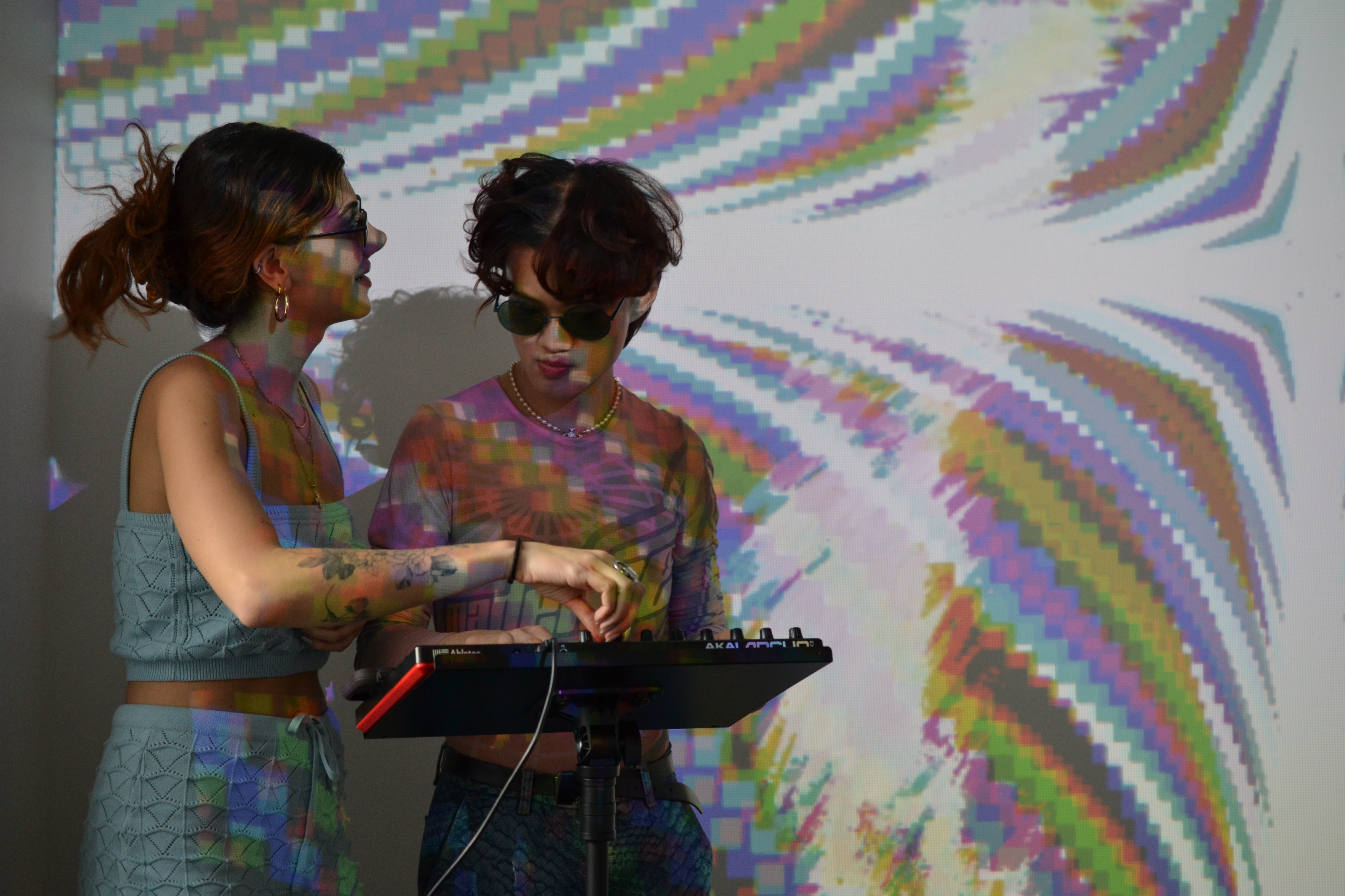 To amplify the depth and responsiveness of these visuals, we integrated noise, mix modes, chromakey, feedback, UV delay, and other advanced parameters, all linked to an AKAI APC40 MKII MIDI board for real-time manipulation during live performances. Layering these visuals with music videos, archival queer imagery, and custom-designed filters, we created a rich, immersive aesthetic that bridges sound and storytelling.